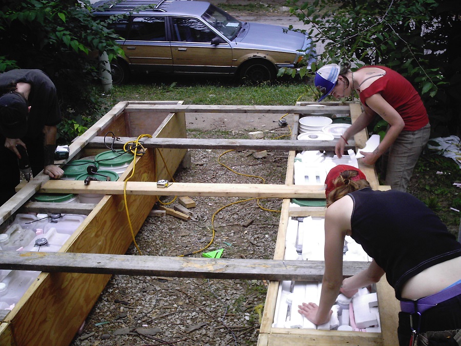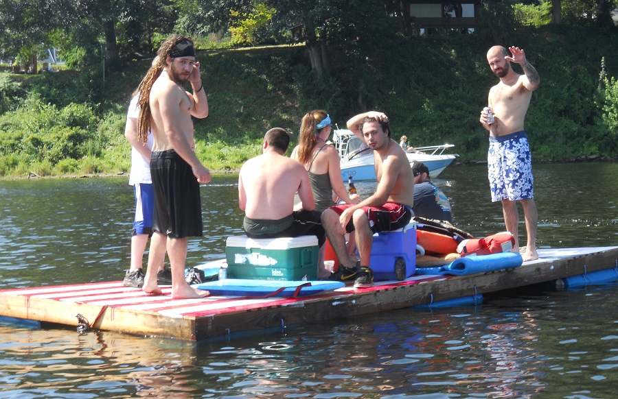 The next step is to take your raft to a pond and see if it floats level with everyone on-board. Be sure to include all the gear that will be on the raft. In some cases you may find that you need a little more buoyancy or you might need to re-position some of the flotation materials, or gear, to help stabilize the raft. Be sure to wear your life jackets too!
