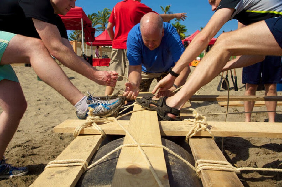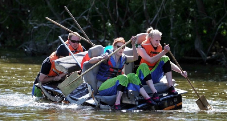 Teamwork is one of the most important ingredients for raft racing. You'll want to join forces and ideas with as many people as you can. The benefits of this joint effort becomes evident when looking for building materials, borrowing tools, discussing ideas, and constructing your raft. Everyone has different resources and pooling them together to build a raft is the way to succeed. An enjoyable part of raft racing is the preparation stages where you and your teammates get together to plan, build, laugh and carry on, and test your raft.